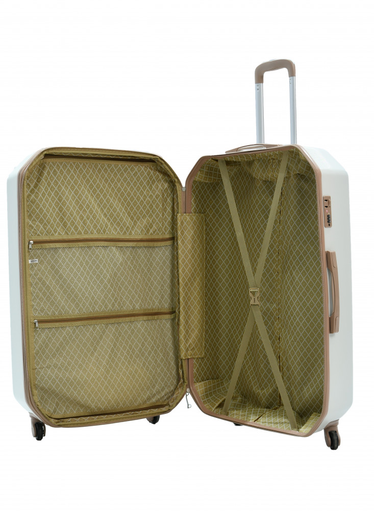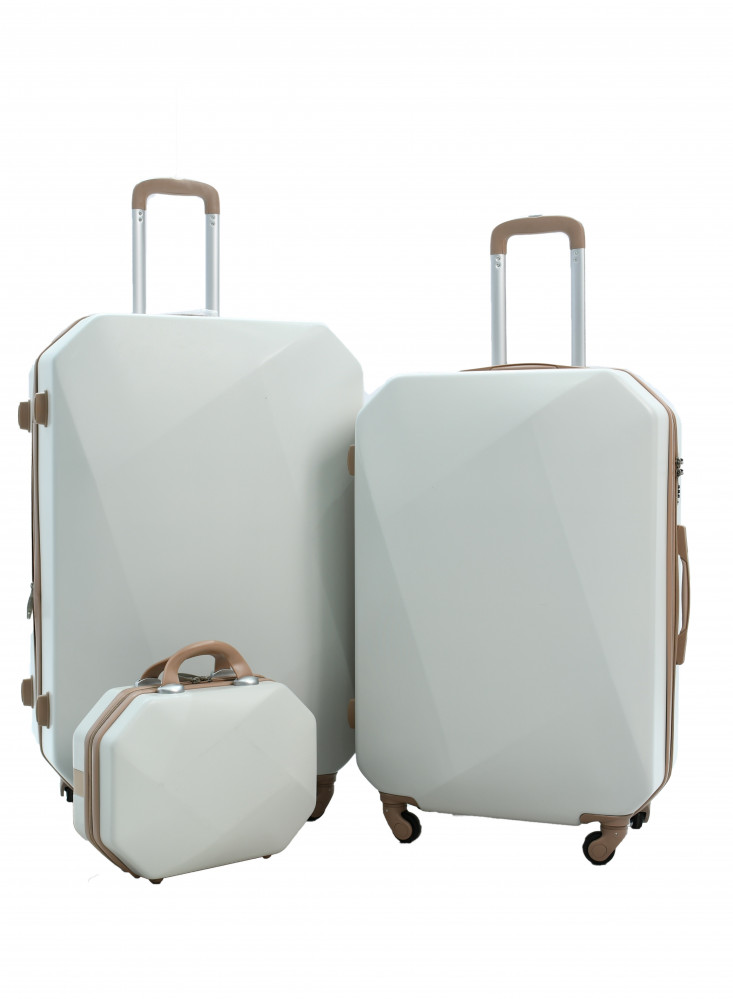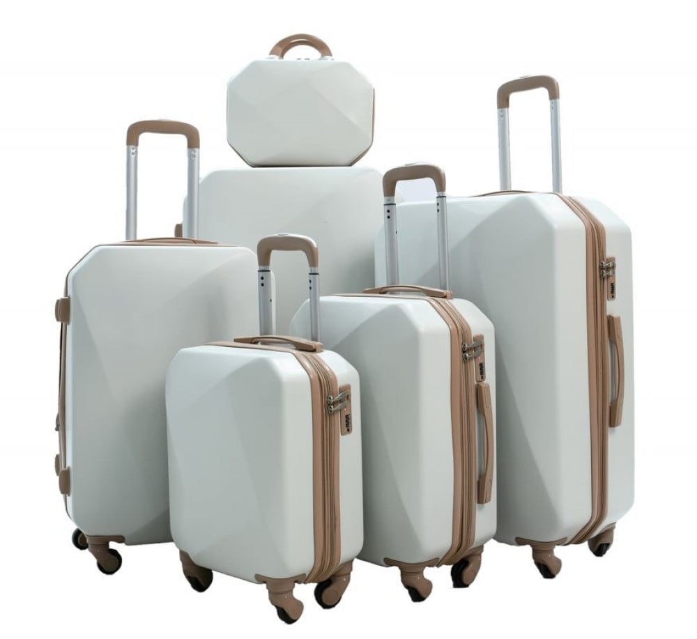 طقم حقائب من مورانو عصري ومناسب لجميع رحلاتك وتنقلاتك براحه وسهوله مكونه من 5 قطع وحقيبة عنايه شخصيه, لون أبيض بإطار بيج كاكي