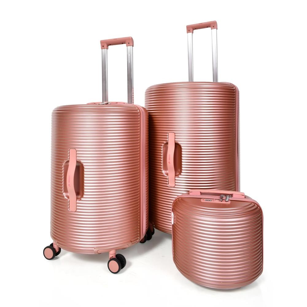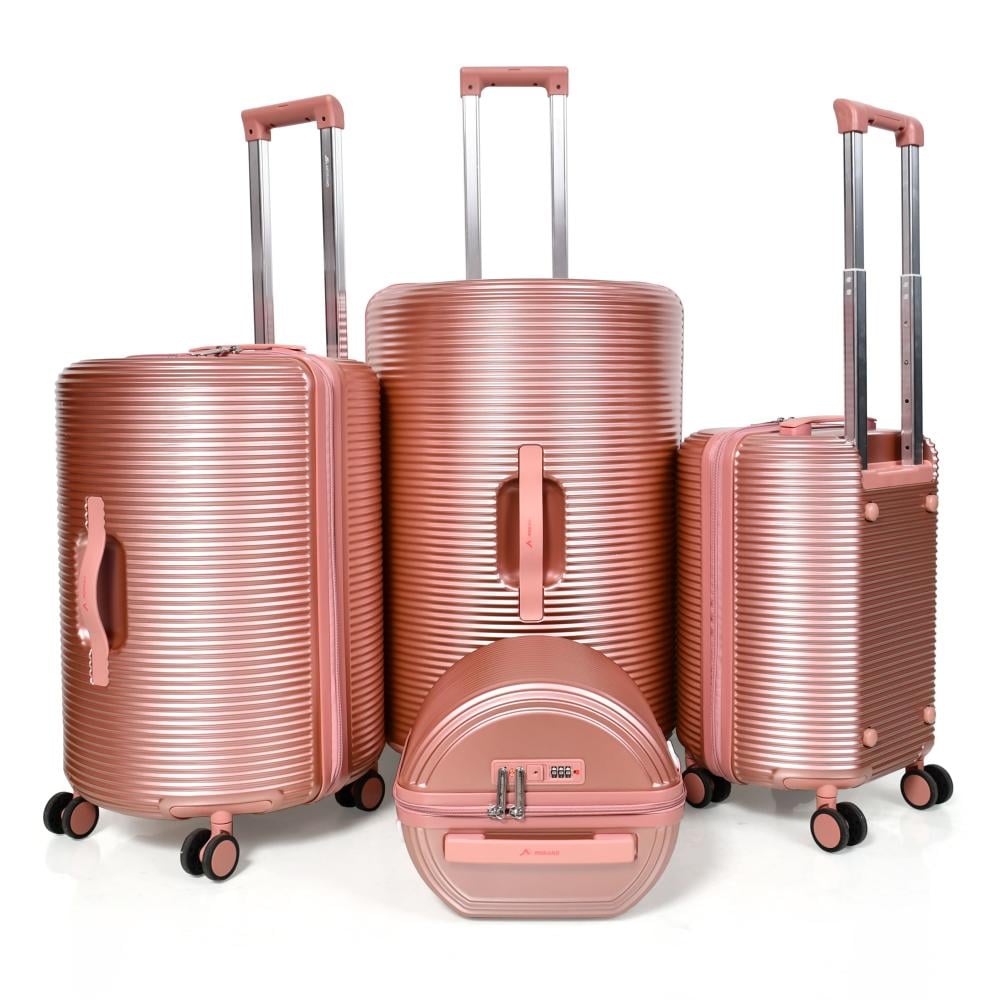 طقم شنط سفر مورانو 4 قطع بتصميم أسطواني جديد روز قولد