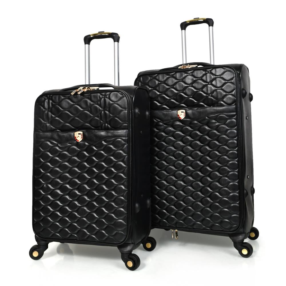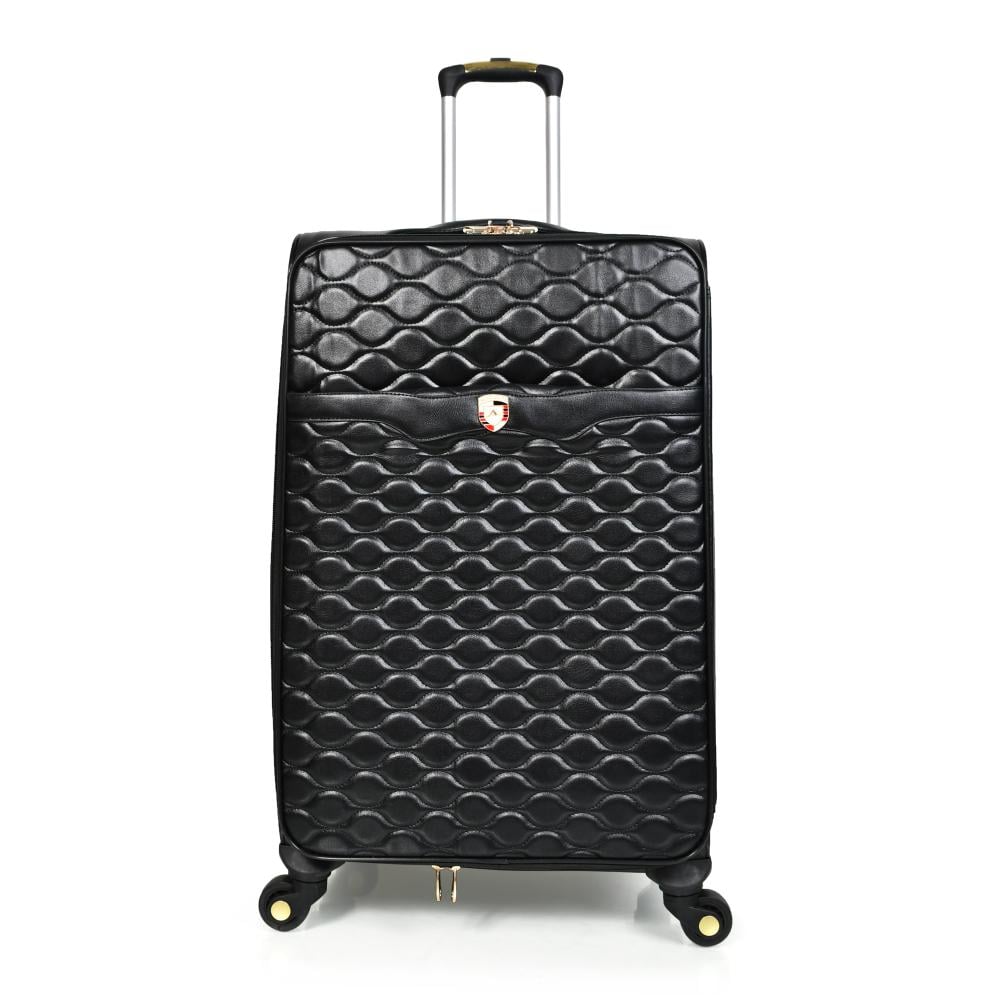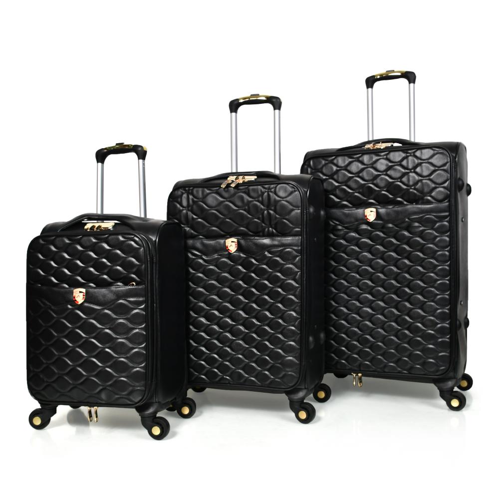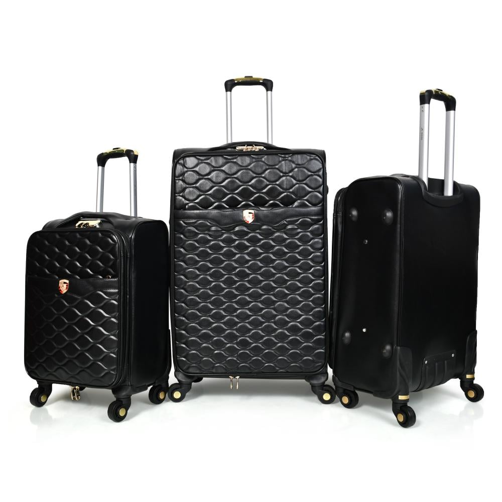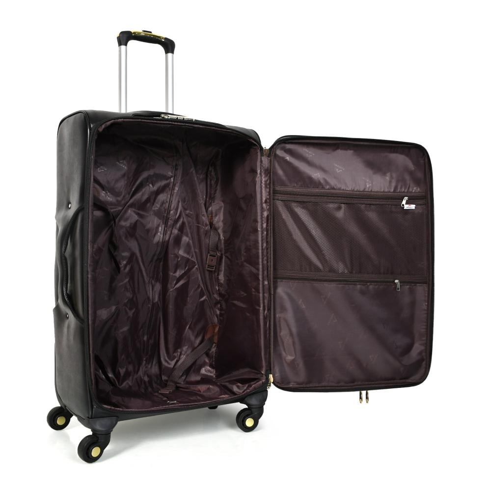 مورانو طقم شنط سفر جلد ثلاثة قطع 28 انش و 24 انش و 20 انش لكبينة الطائرة أسود