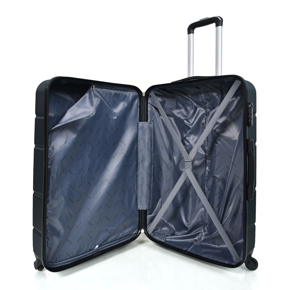 طقم شنط السفر من مورانو يمثل مزيجًا مثاليًا بين التصميم الحديث، التخزين الذكي، الخفة، والصلابة. الطقم الثلاثي المصنوع من مادة Acrylonitrile Butadiene Styrene (ABS). طقم شنط سفر 3 قطع 28-24-20 انش