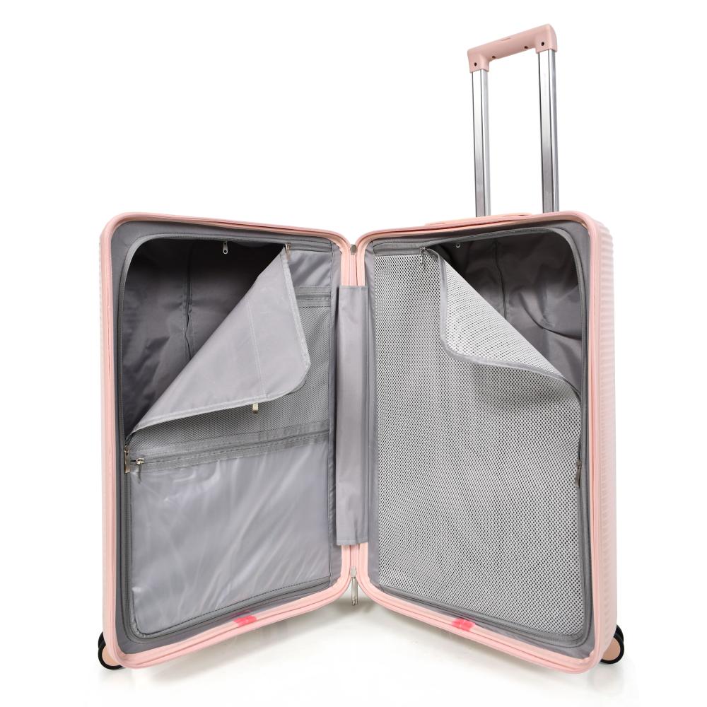 - تأتي بمقاس حجم القطعة الكبيرة 28 انش وتأتي القطعة الوسطى بمقاس 24 انش و تأتي القطعة الصغيرة بمقاس 20 انش وشنطة المكياج بمقاس 14 انش .