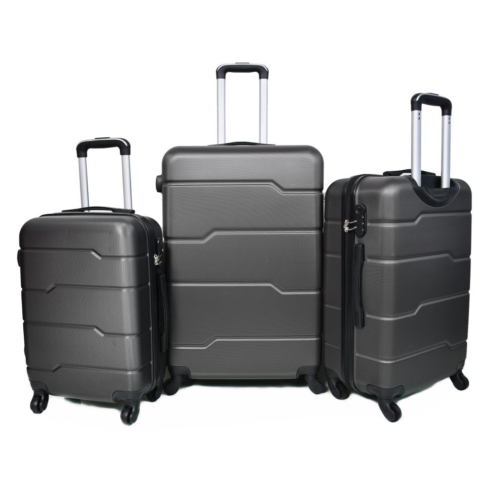 طقم شنط السفر من مورانو يمثل مزيجًا مثاليًا بين التصميم الحديث، التخزين الذكي، الخفة، والصلابة. الطقم الثلاثي المصنوع من مادة Acrylonitrile Butadiene Styrene (ABS). طقم شنط سفر 3 قطع 28-24-20 انش