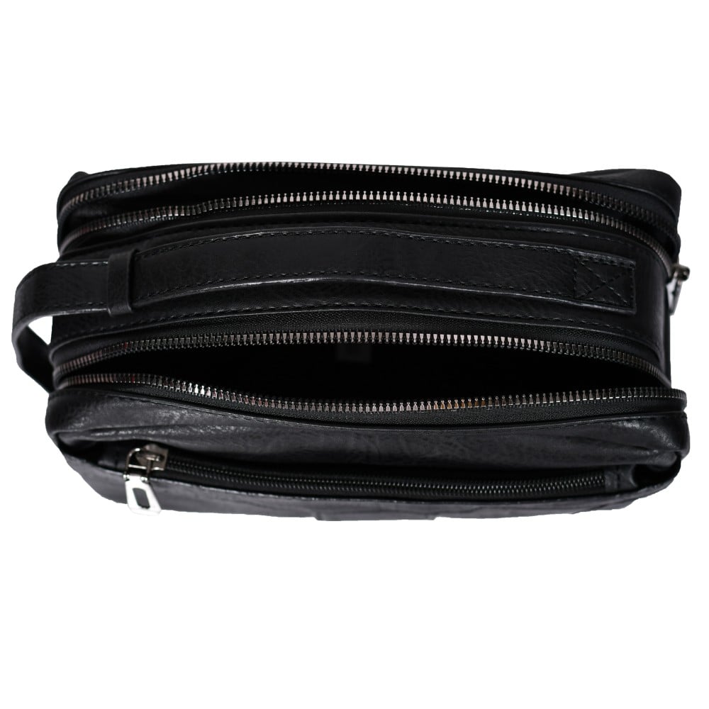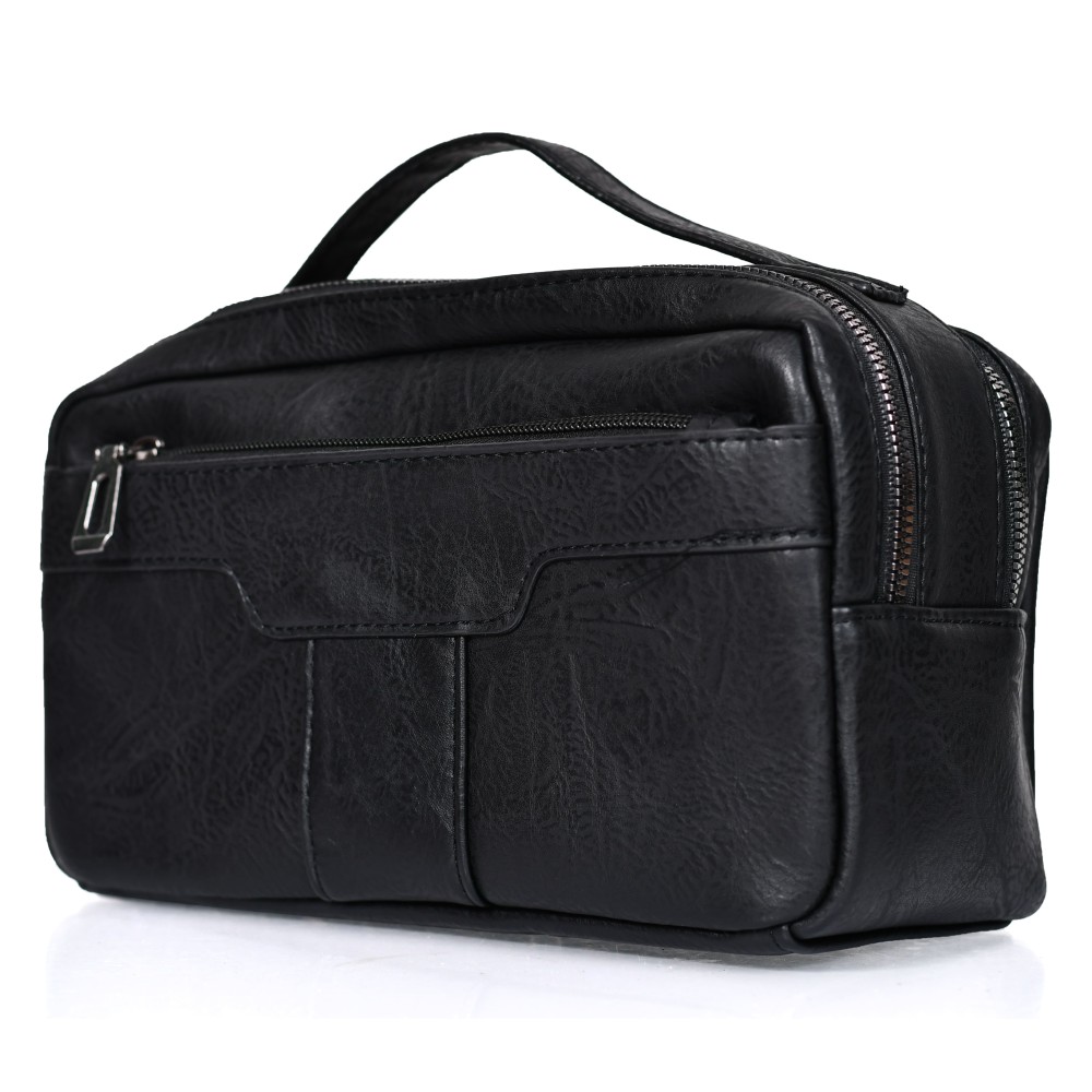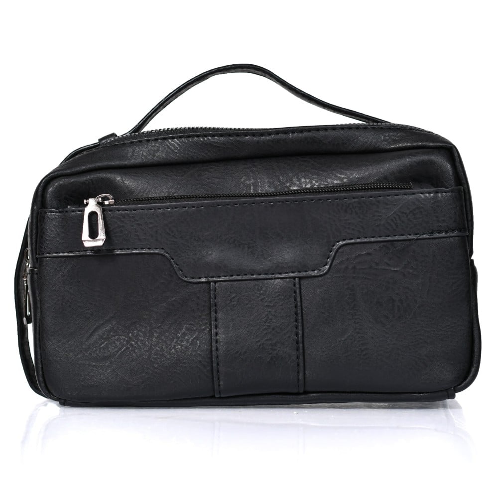 شنطة يد جلد بمقبض معصم مع فتحة داخلية للنقود والبطاقات و الاكسسورات أسود