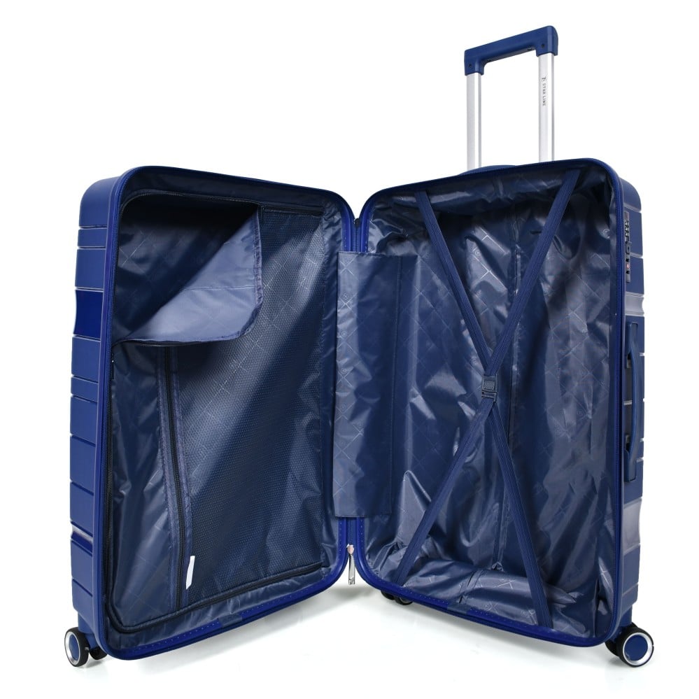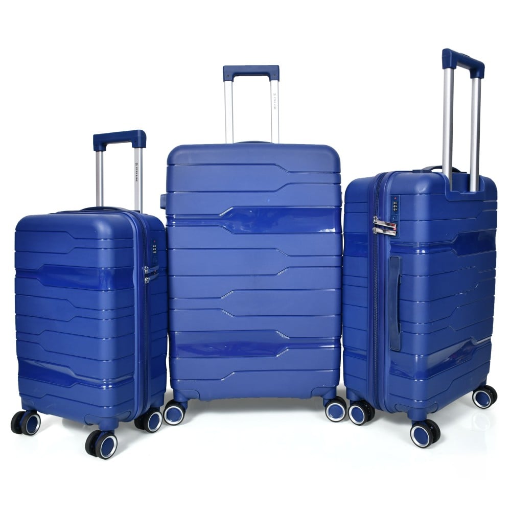 طقم شنط السفر من مورانو المصنوعة من البولي بروبلين هي شنط مصممة خصيصًا لتحمل الأمتعة والملابس خلال الرحلات. طقم سفر من ثلاثة قطع كبيرة 28 انش وسط 24 انش و صغيرة 20 انش لكبينة الطائرة