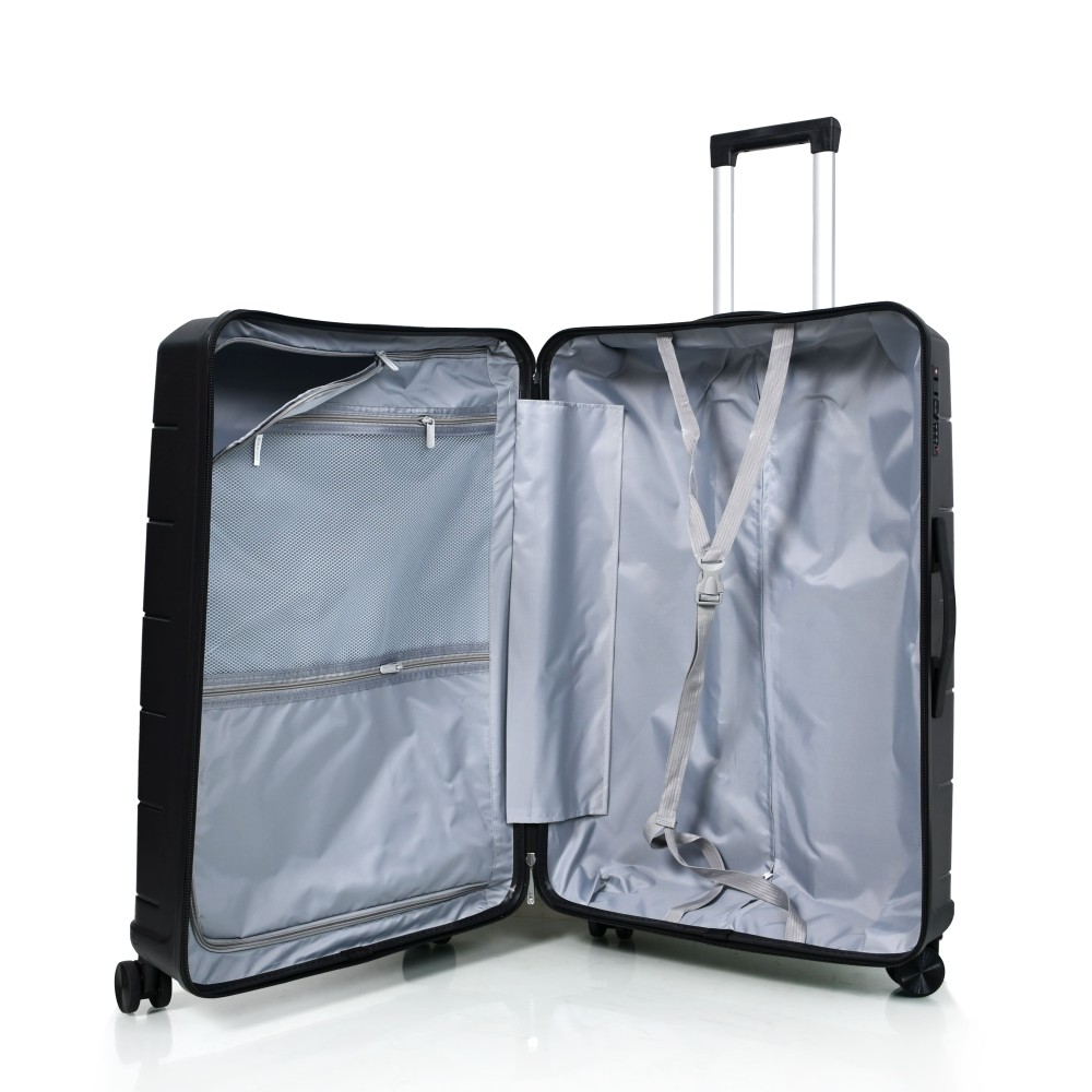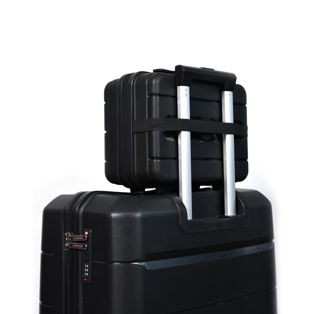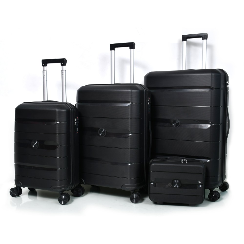 طقم شنط السفر من مورانو المصنوعة من البولي بروبلين هي شنط مصممة خصيصًا لتحمل الأمتعة والملابس خلال الرحلات. طقم سفر من 4 قطع كبيرة 28 انش وسط 24 انش و صغيرة 20 انش لكبينة الطائرة وحقيبة مكياج 12 انش