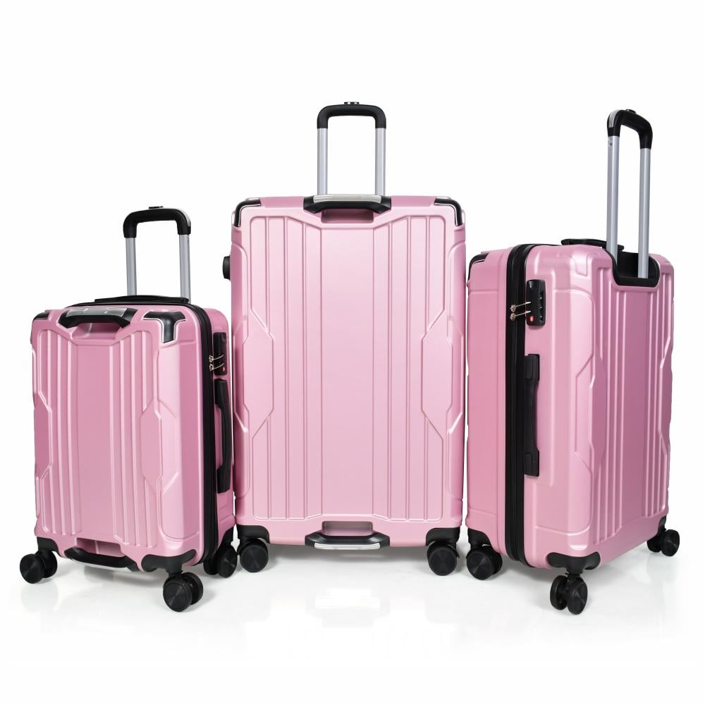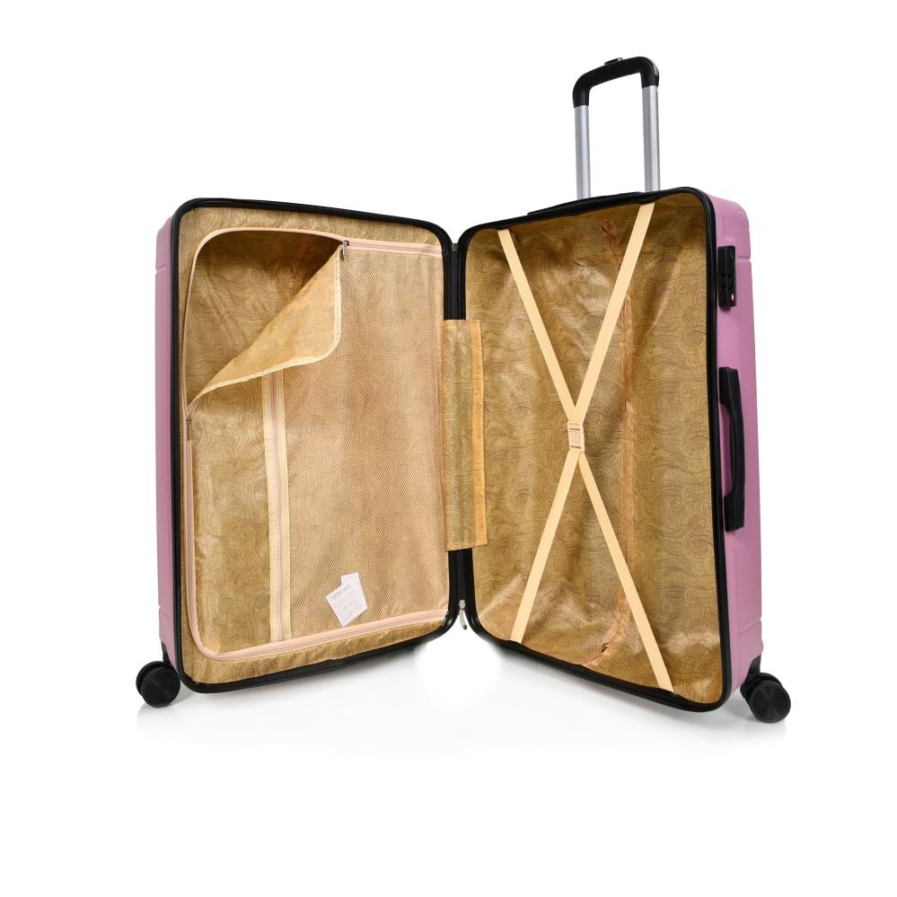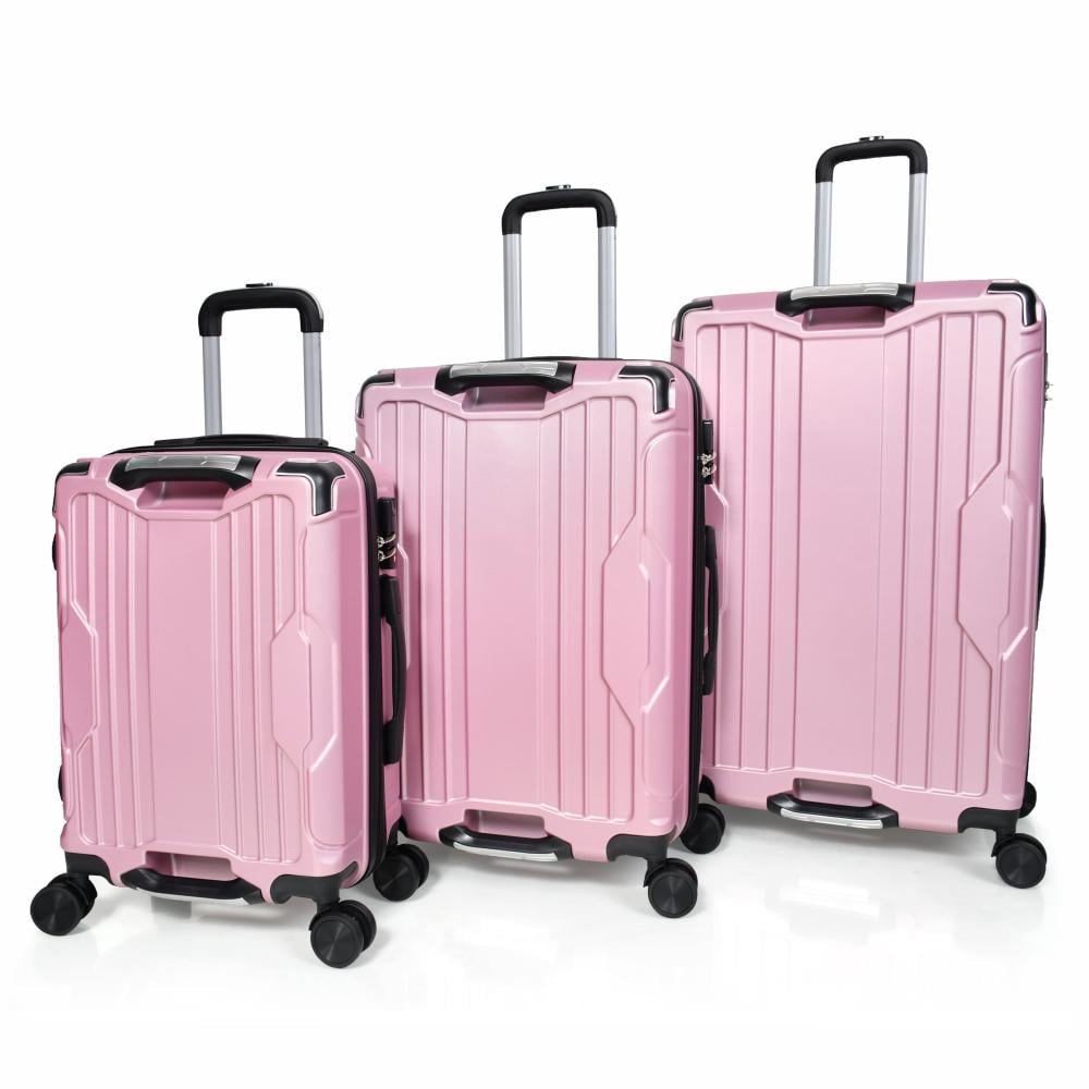 طقم شنط سفر مورانو فايبر بتصميم معينات احادية قوية 3 قطع وردي