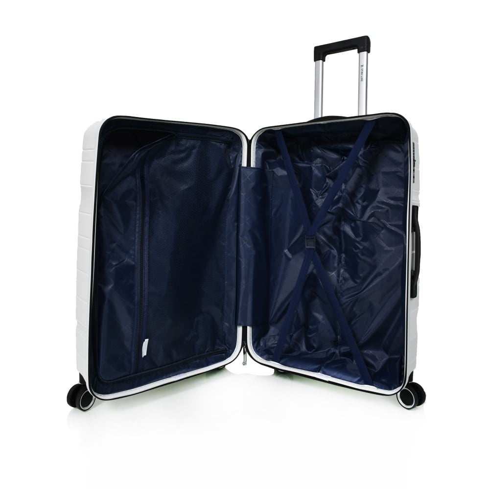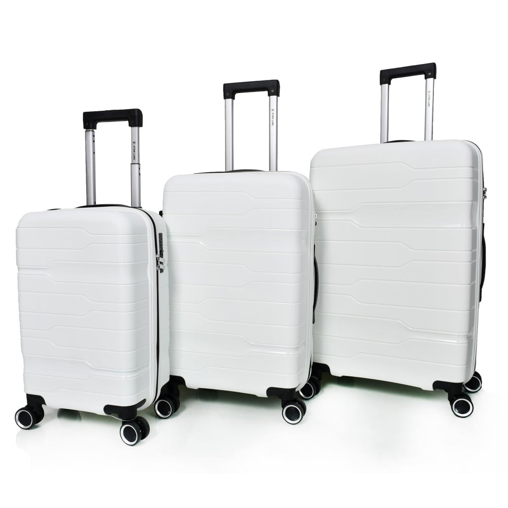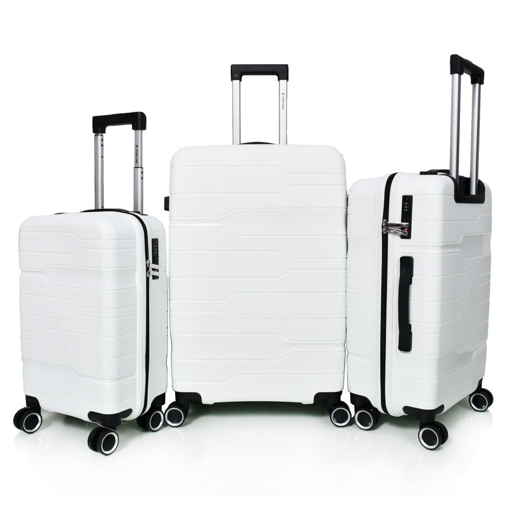 طقم شنط السفر من مورانو المصنوعة من البولي بروبلين هي شنط مصممة خصيصًا لتحمل الأمتعة والملابس خلال الرحلات. طقم سفر من ثلاثة قطع كبيرة 28 انش وسط 24 انش و صغيرة 20 انش لكبينة الطائرة