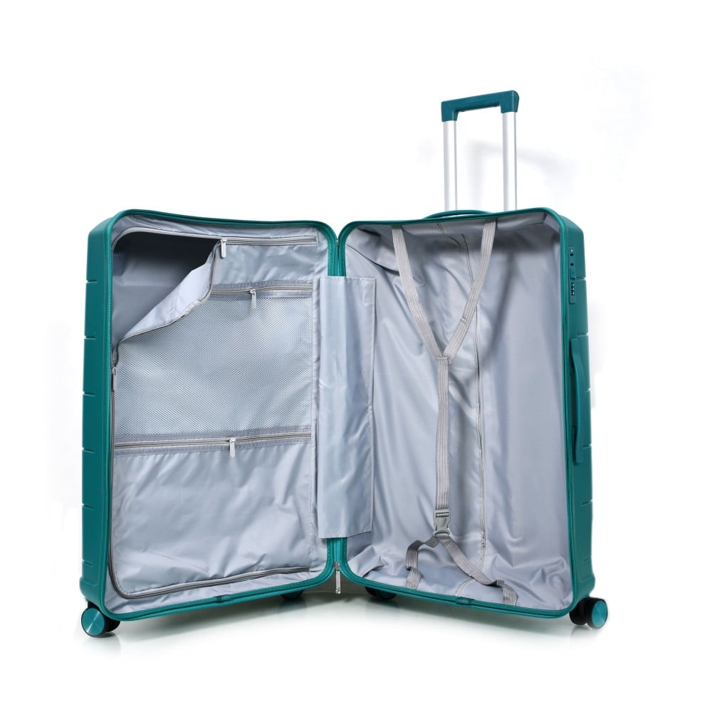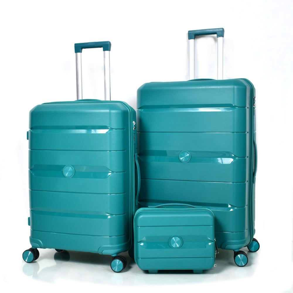 طقم شنط السفر من مورانو المصنوعة من البولي بروبلين هي شنط مصممة خصيصًا لتحمل الأمتعة والملابس خلال الرحلات. طقم سفر من 4 قطع كبيرة 28 انش وسط 24 انش و صغيرة 20 انش لكبينة الطائرة وحقيبة مكياج 12 انش