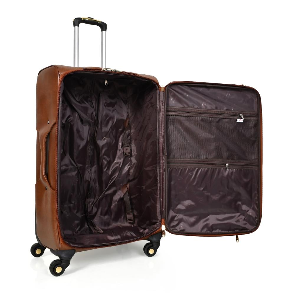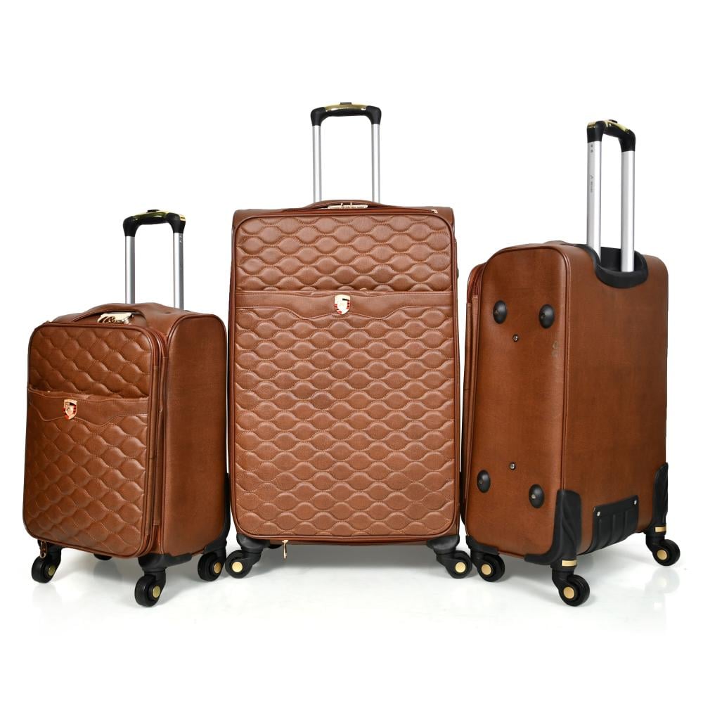 مورانو طقم شنط سفر جلد ثلاثة قطع 28 انش و 24 انش و 20 انش لكبينة الطائرة بني
