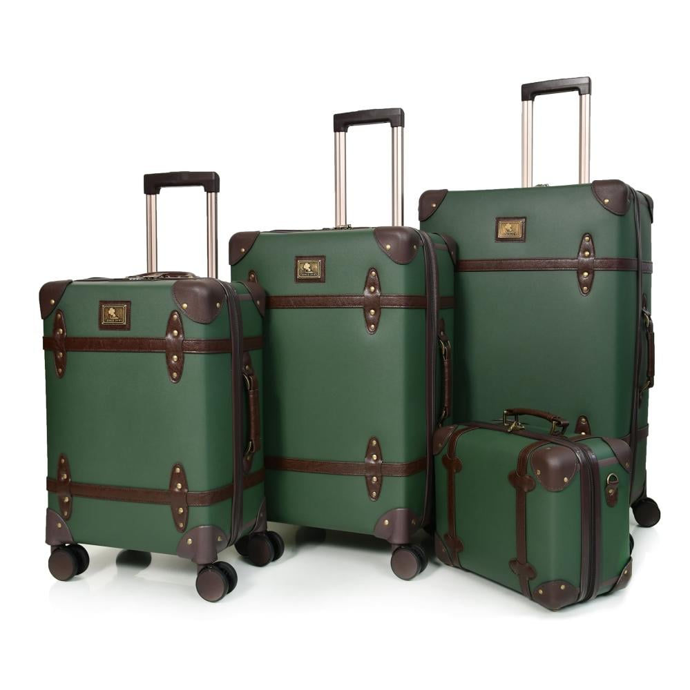 طقم شنط سفر كلاسيك جلد بلكامل مورانو اربع قطع اخضر غامق