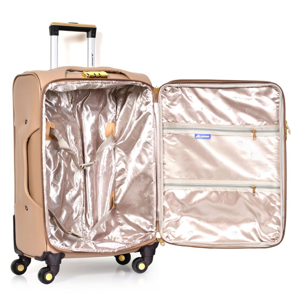 • الأبعاد الواسعة: تتوفر في مجموعة متنوعة من الأحجام لتلبية احتياجات السفر المختلفة، مع مساحة داخلية وفيرة لتنظيم الأغراض