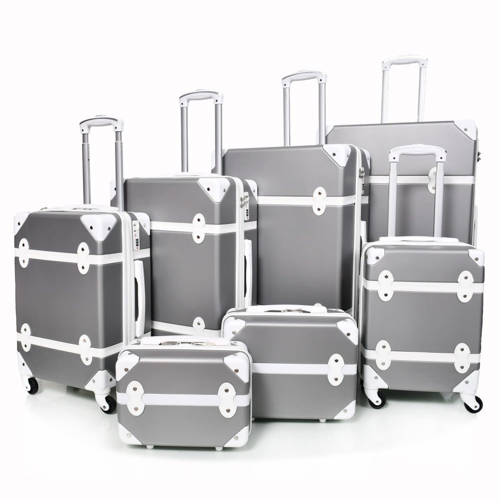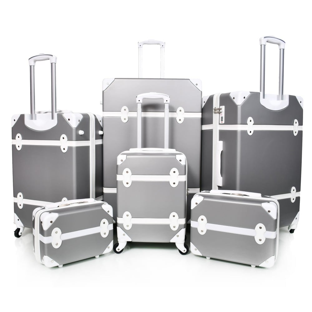 - يحتوي الطقم على عدة مقاسات لتناسب جميع احتياجاتك الكبيرة الاولة مقاس 32 انش الكبيرة الثانية 28 انش الوسط 24 انش الصغيرة 20 انش الاصغر لكبينة الطائرة 18 انش و شنتطين مكياج واحدة بمقاس 14 انش و الثاني 12 انش