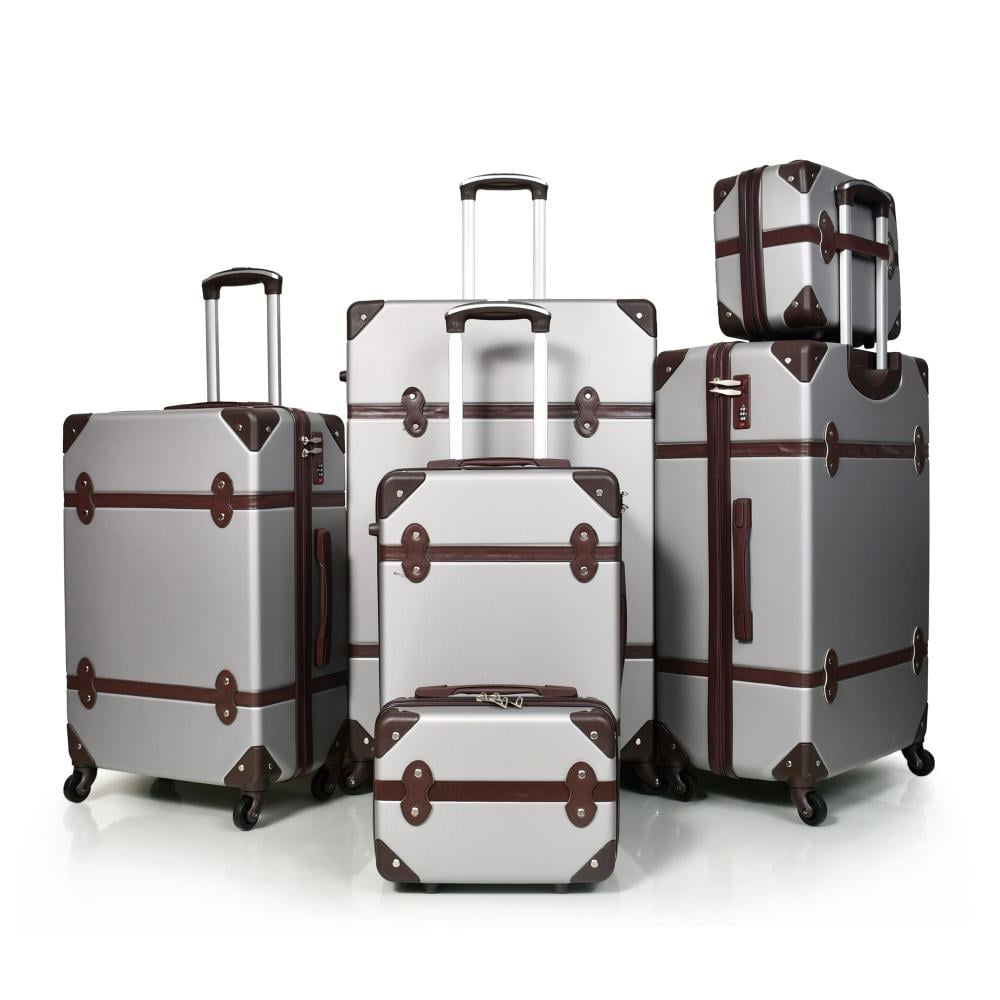 مورانو طقم شنط سفر فايبر خمس قطع و شنطتين مكياج رمادي
