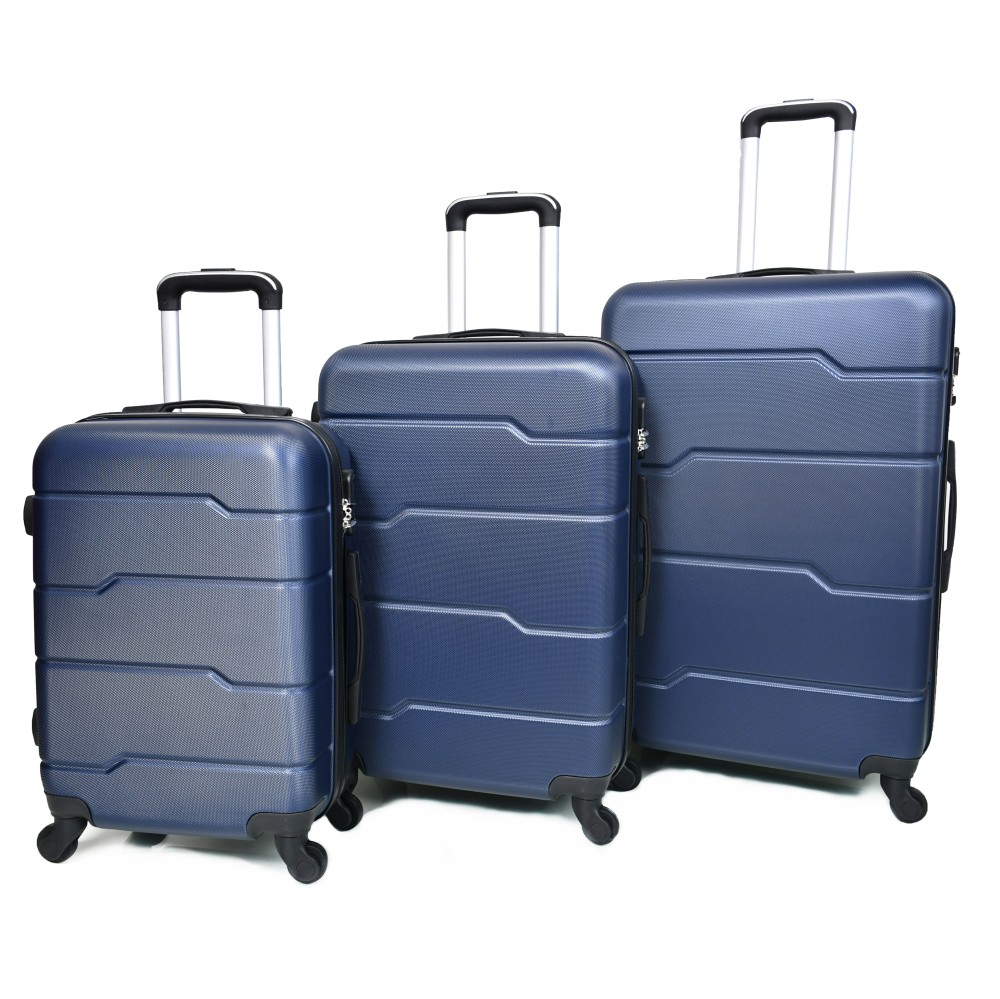 طقم شنط السفر من مورانو يمثل مزيجًا مثاليًا بين التصميم الحديث، التخزين الذكي، الخفة، والصلابة. الطقم الثلاثي المصنوع من مادة Acrylonitrile Butadiene Styrene (ABS). طقم شنط سفر 3 قطع 28-24-20 انش