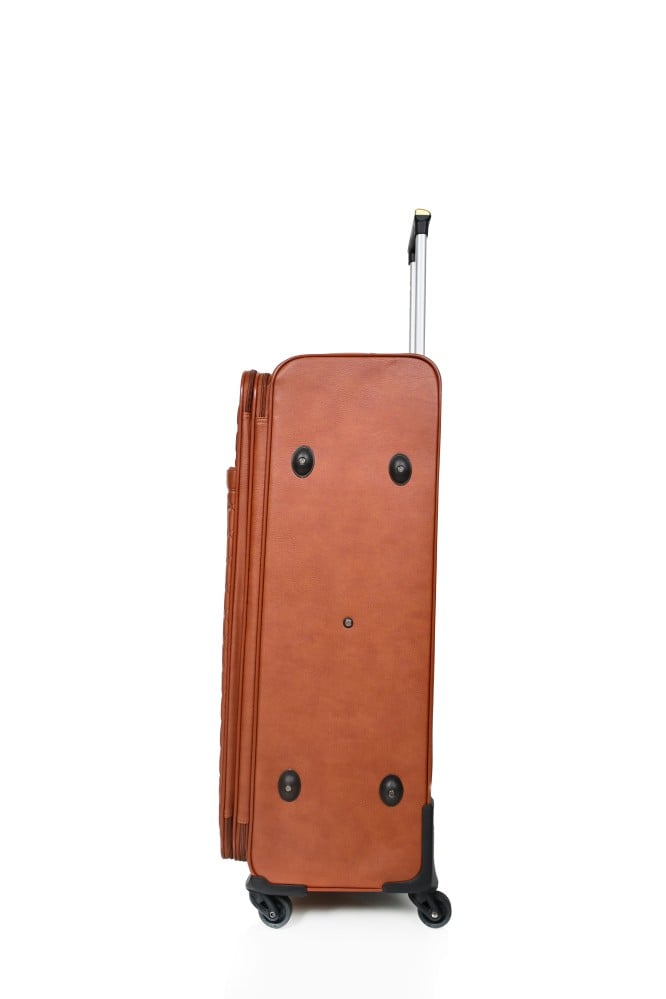 شنطة سفر جلد فاخر من مورانو مقاس 32 أنش بناي فاتح طقم اريع قطع