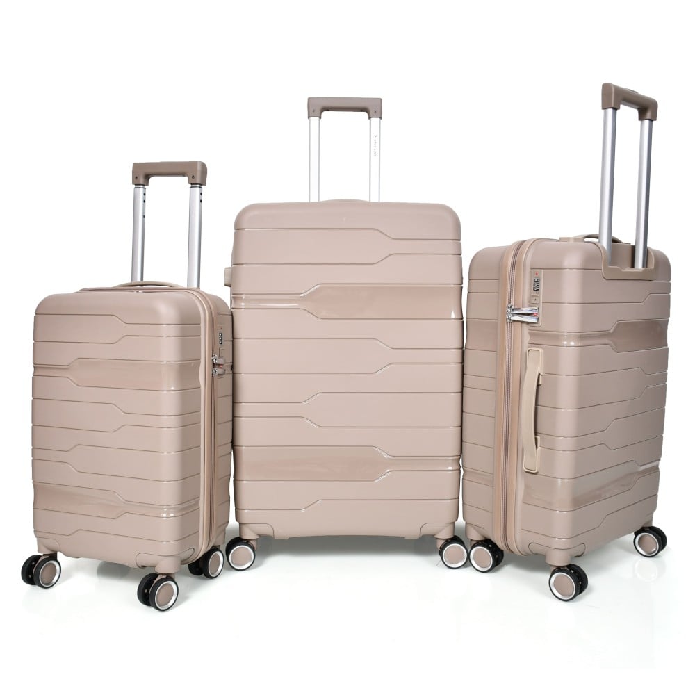 طقم حقائب سفر من مورانو من البولي بروبلين من 3 قطع و 4 عجلات دوارة مع قفل مدمج نوع TSA لون شامبان ذهبي