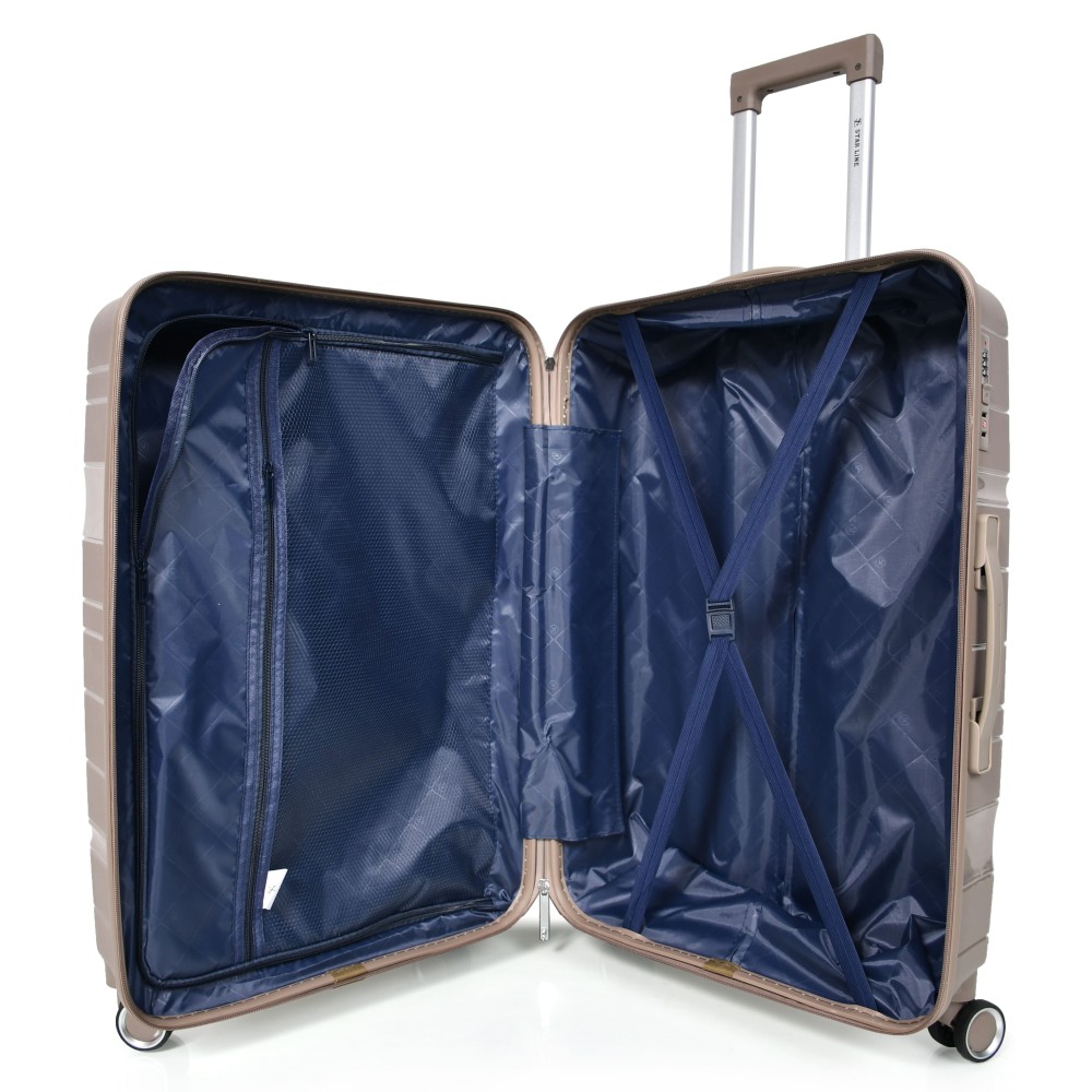 • مادة الصنع: تصنع شنط السفر من مادة البولي بروبلين، وهي مادة بلاستيكية قوية ومتينة. تتميز بالمقاومة للصدمات والخدوش، مما يجعلها مناسبة للاستخدام في الظروف القاسية خلال السفر.